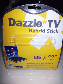 Dazzle tv , hybrid stick, per prendere il segnale digitale ed analogico e trasmetterlo sul PC o computer. Si possono vedere tutti i canali preferiti.
