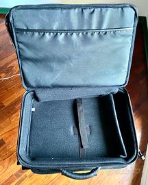 Come da foto valigetta Hewlett Packard in pelle nera semirigida, composta di due scomparti separati più una tasca esterna sul davanti. All'interno sono presenti separatori da utilizzare a proprio uso e consumo a seconda degli oggetti da riporre.