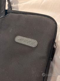 Valigetta per portare PC con superficie interna in pelle di daino e tascone laterale per inserire mouse, cavo di ricarica e tappetino mouse o accessori vari