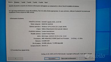 Vendo vecchio PC fisso da gaming con le specifiche riportate in foto, con un HDD da 1TB e una AMD R9 280 da 3Gb, con Windows 10; perfettamente funzionante, può essere usato sia come PC da ufficio sia per giocare giochi della vecchia generazione/indie minori.