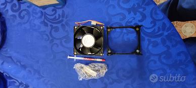 Ventola e dissipatore per CPU Intel con accessori per il montaggio nello scatolo originale.