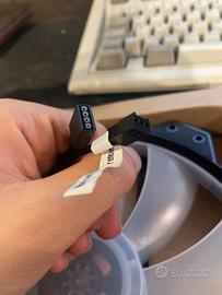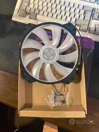 Vendo Ventola ARGB Cooler Master da 200mm, mai installata (come si vede in foto, le viti sono ancora nel pacchetto), in foto é stata accesa per la seconda volta in assoluto (prima volta testata all’arrivo di essa quando fu acquistata) ed ora collegando il cavo d’alimentazione da 3 pin al PC e il Controller RGB esterno per LED a 12V. Se volete ulteriori informazioni: Alimentazione 12V capo tipo PWM (quelli che trovate nella scheda madre con scritto CPU_FAN o simili) per i LED il 4 pin RGB da 12V (in allegato foto connettori). Vendo per progetto mai realizzato. Prezzo trattabile!