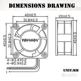 Ventola di raffreddamento compatta 40×40×20 mm, ideale per PC, stampanti 3D, Arduino, Raspberry Pi o altri progetti elettronici.