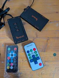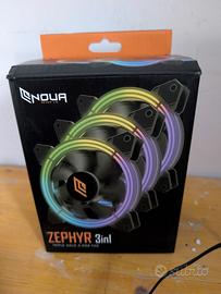 4 ventole NOUA 120mm + 2 hub + 2 telecomandi – RGB controllabile Descrizione: Vendo 4 ventole NOUA da 120mm complete di sistema di controllo RGB e tutti gli accessori per gestire illuminazione e velocità — perfette per PC gaming o configurazioni personalizzate. Dettagli prodotto: 3 ventole NOUA Zephyr Black Triplo Halo RGB 120mm: set originale con controller incluso (RGB Addressable e controllo effetti tramite controller e telecomando). 1 ventola NOUA da 120mm aggiuntiva: dello stesso marchio, leggermente diversa nel modello ma compatibile con gli stessi accessori. Connettore a 6 pin: tutte le ventole si collegano agli hub per gestire contemporaneamente RGB e velocità. Accessori inclusi: 2 hub NOUA 2 telecomandi per gestione di colori, effetti RGB e velocità delle ventole Motivo della vendita: Le ventole sono state tolte dal mio PC gaming perché ho cambiato il sistema di controllo RGB/PWM e non erano più compatibili con la mia configurazione. Condizioni: Usate ma perfettamente funzionanti. Tutti gli accessori e le ventole sono integri e funzionanti.