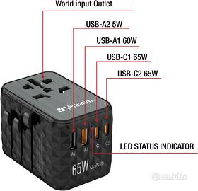 Verbatim GaN - Adattatore da viaggio universale