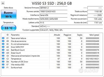 In Buone condizioni .. 99% del ciclo vita con queste caratteristiche .. Produttore : Verbatim Modello : Vi550 S3 Capacità SSD : 256 GB Fattore di forma : 2,5" Interfaccia : SATA 6 Gbit/s Velocità di lettura sequenziale: Fino a 560 MB/s Velocità di scrittura sequenziale : Fino a 535 MB/s Resistenza (TBW) : 480 TB Spedizione Veloce