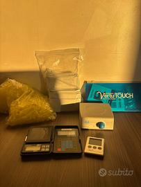 Agitatore magnetico, incubatore automatico 2 posti, Aqua Premix Solution 5L, Don Strips Aqua (25 test), filtri di carta, bicchieri, puntali micropipetta (1000 pz) e micropipetta 100 µl.