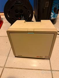 Design: Si presenta con una struttura compatta "a cubo" di colore grigio/beige, con una tastiera che si ripiega per coprire lo schermo quando non in uso.