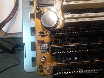 Scheda madre con processore AMD 200 MMX,64 MB ram , scheda video e audio 16bit con ingresso gameport, . Viene venduta testata sia le porte seriali come anche usb1 a doppio ingresso e i bus ide e floppy. Le immagini sono esaustive del funzionamento.