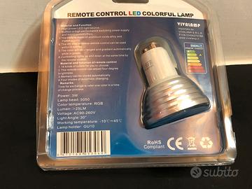 VIVALAMP CONTROLLER+LED RGB 3W 90-260V AC Attacco GU10 Colore Led RGBW (Rosso Verde Blu Bianco) con 16 Gradazioni di Colore Possibili il Controller Funziona ad una Distanza Massima di 5 Metri Durata 30000 Ore Colore del Faretto Grigio PREZZO UNITARIO 5,00€ SPEDIZIONE ESCLUSA