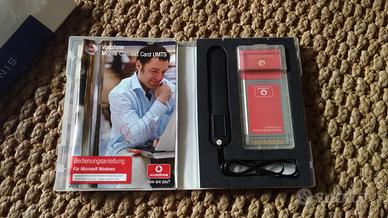 Modem Vodafone Mobile Connect Card DataCard 3G/GPRS Option Qualcomm Broadband PCMCIA, con antenna esterna per ampliamento ricezione segnale. Confezione originale e software (drivers).