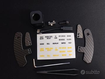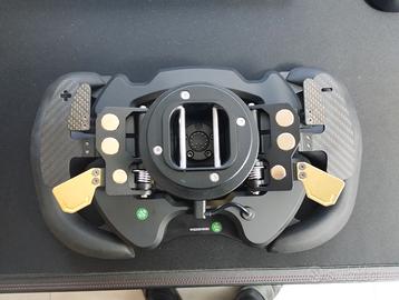 volante fanatec podium endurance compreso di supporto per montarlo sui profilati di alluminio, adesivi e pinzetta per applicarli, viti per il montaggio, palette del cambio di ricambio, simube hub e qr2