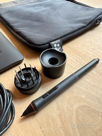 Vendo per inutilizzo tavoletta grafica Wacom Intuos Pro Small (modello PTH-451), uno dei modelli più robusti e affidabili prodotti da Wacom, perfetto per fotoritocco, illustrazione digitale e smart working. La tavoletta è perfettamente funzionante e viene venduta con tutti gli accessori originali visibili in foto. Il kit include: • Tavoletta Wacom Intuos Pro S: con tasti ExpressKey personalizzabili e Touch Ring. • Wacom Grip Pen: la penna professionale con sensibilità alla pressione e gomma sul retro. • Portapenna a calice: che si svita per rivelare il set di punte di ricambio. • Set di punte extra: incluse diverse punte standard e punte "felt" (grigie) ancora nuove. • Cavo USB originale: per il collegamento al computer. • Custodia protettiva Wacom morbida: originale e imbottita, specifica per questo modello (perfetta per il trasporto). Caratteristiche principali: • Risoluzione: 5080 lpi. • Livelli di pressione: 2048. • Supporto Multi-touch (per usare le dita come su un trackpad). • Dimensioni compatte, ideale per chi ha poco spazio sulla scrivania o viaggia spesso. Condizioni: La tavoletta presenta i normali segni di usura superficiale dovuti all'utilizzo (visibili in foto), che non ne compromettono minimamente il funzionamento tecnico.
