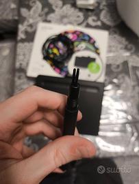 Come da titolo vendo Wacom Intuos Small Bluetooth, comprata 4 anni fa e utilizzata si e no una decina di volte, funziona perfettamente e non presenta segni evidenti di usura, la punta della penna non è mai stata cambiata e all'interno la penna presenta 3 ricambi nuovi mai utilizzati. la tavoletta può essere collegata al pc sia con il cavo che bluetooth, tramite software si possono impostare combinazioni di tasti personalizzate per i 4 tasti programmabili sulla tavoletta (Es. CTRL+Z, CTRL+S, ecc...). Vendo per inutilizzo per qualsiasi informazione non esitate a contattare, posso anche spedire senza problemi con TuttoSubito.