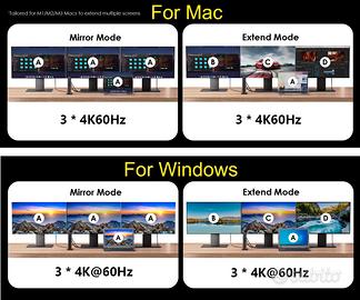 Non compatibile con sistemi Unix, Linux, iOS e iPad OS. *Non supporta il plug and play; è necessaria l'installazione del driver DisplayLink più recente.