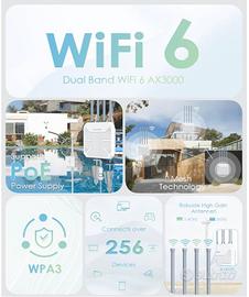 WAVLINK Ripetitore WiFi lungo raggio WiFi esterno potente amplificatore segnale WiFi antenna WiFi Extender WiFi 6 Wavlink AX3000 Mesh, Outdoor PoE punto di accesso WiFi, per grandi spazi remoti. Imballo originale