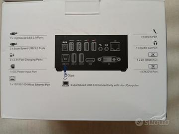 Docking station per laptop WAVLINK USB 3.0 / USB C con doppia uscita video (HDMI e DVI, VGA o HDMI), LAN Gigabit, audio, 4 porte USB, 2 porte di ricarica USB