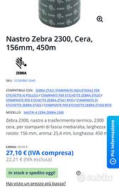 Causa cambio stampante, vendo nastri in cera (wax ribbon), originali Zebra, colore nero serie 2300 wax 02300BK15645