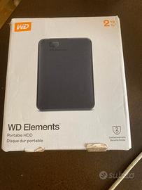 Hard disk esterno portatile Western Digital WD Elements da 2 TB, ideale per archiviazione e backup di file, foto, video e documenti.