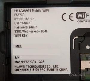 HUAWEY Mobile WiFi mod. E5573Cs-322 Velocità max 150Mb/sec