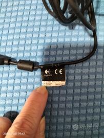 Webcam Logitech per PC, ideale per videochiamate e streaming. - Design moderno grigio e nero. - Cavo di collegamento incluso.