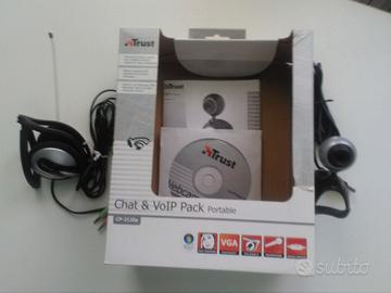 Webcam Trust dotata di pulsante snap-shot e cuffie pieghevoli con supporto retro nuca, da utilizzare per Live Messenger, Skype e servizi di messaggistica (chat e videoconferenze on-line). Corredati di CD-ROM per installazione driver e manuale di istruzioni. Usata pochissimo.