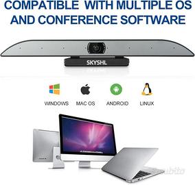 Creatore di alta qualità del suono--Gli 8 array di microfoni fanno di VCC4K una capacità di raccolta del suono eccellente, la distanza massima di raccolta nella gamma anteriore può raggiungere 8-10M e si può ottenere una ripresa di 180 gradi. Gli esclusivi algoritmi di soppressione del rumore e cancellazione dell'eco rendono la voce dell'interlocutore più chiara.