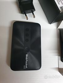 Router portatile universale WebPocket 4G LTE, permette di connettere a internet fino a 10 dispositivi, connessione fino a 150 mbps in base al proprio operatore telefonico. Installazione facile.