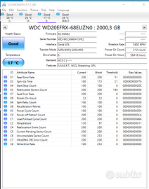 Western Digital Red 2 TB (WD20EFRX) – Hard Disk per NAS HDD da 3,5" della serie WD Red, progettato per funzionare 24 ore su 24 in sistemi NAS e piccoli server. Silenzioso, con consumi contenuti e ottima affidabilità per archiviazione continua. Capacità 2 TB, velocità 5400 RPM, cache 64 MB. Usato ma in ottime condizioni, testato e in buona salute (guardare smart). Ideale per backup, storage di foto/video o media server domestico. Spedizione veloce e ben imballato!