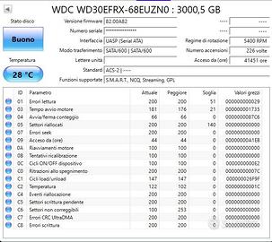 Vendo Hard Disk Western Digital RED da 3Tb WD30EFRX Ottimo stato , allego dati SMART