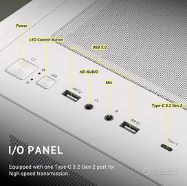 Supporta schede madri ATX, micro‑ATX e ITX; GPU fino a 410mm, cooler CPU fino a 160mm, PSU fino a 240mm inclusi i cavi