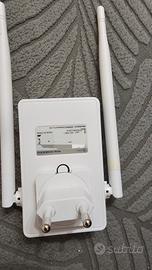 Vendo ripetitore Wi-Fi UIMoor modello JW-WR302S V2, perfetto per estendere il segnale di rete in zone della casa difficili da raggiungere. Dispone di 2 antenne orientabili, porta Ethernet RJ45 e supporto sia alla banda 2.4 GHz, ideale per compatibilità con la maggior parte dei dispositivi.