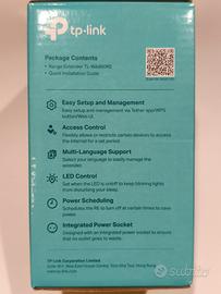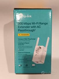 Range extender tp-link 300Mbps. si attacca alla presa di corrente tedesca, 2 antenne ad alto guadagno, porta ethernet, facile comfigurazione con la aua app, usato un paio di mesi.