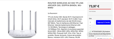 Wifi router Dual Band tp-link con scatola e accessori; Archer C60 Router (Ethernet) Wi-Fi AC1350;