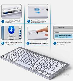 OMOTON Tastiera Bluetooth per Mac OS, Tastiera Wireless Compatta per Macbook pro/air, imac, Mac mini, Mac pro, QWERTY IT-Layout, Argento