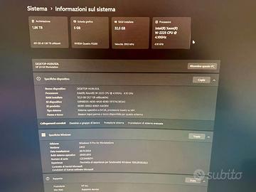 -PC HP workstation da lavoro professionale Z4 G5, per videomontaggio/grafica/editing foto/modellazione 3d/ giochi, principali caratteristiche: Intel xeon W-2225, 32gb di ram ddr4, 2tb SSD e scheda video quadro p2200 da 5gb.