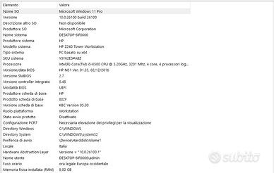 Workstation HP Z240 con Intel i5-6500 e 8Gb di Ram, SSD 240 Gb e windows 11 originale con licenza digitale.