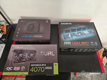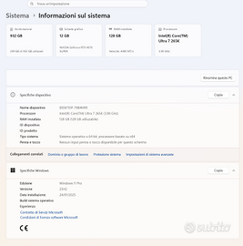 PC Workstation Professionale, Intel Ultra 7 265K, RAM 128 GB, RTX 4070 Super Workstation ad alte prestazioni, come nuova e ancora in garanzia, acquistata da Tradeco il 15 gennaio 2025 in garanzia fino a gennaio 2027. Appena effettuata revisione annuale con fattura. Utilizzata principalmente per attività di Interior Design e Rendering e animazioni con Blender ( Cycles) e Rhrinoceros 3D. Ottima anche per il Gaming visto le caratteristiche ma adatta principalmente ad un utilizzo professionale, costruita in modo da essere ulteriormente espandibile e potenziabile. Presenti scatole componenti. Caratteristiche principali: Processore: Intel Ultra 7 265K CPU, 20 cores, 5.5 GHz Dissipatore per CPU maggiorato: kit a liquido all in one 360mm premium Scheda madre: Chipset Z890 con WiFi Integrato RAM: 128 GB DDR5 6400Mhz espandibile fino ad un massimo di 192GB Scheda grafica 12 GB: Nvidia RTX 4070 Super SSD 1: 1TB m2 nvme Gen 4 Alimentatore 80+ Gold 1000W (pronto per futuro upgrade) Case: Full Tower professionale Sistema operativo: ESD Windows 11 PRO Altre caratteristiche visibili in foto, prese usb, wifi, video ecc.. Disponibile a inviare altre informazioni o foto su richiesta, prova e visione se realmente interessati. Visto il peso e il valore non si effettua spedizione, solo consegna a mano zona Firenze Sud, dopo presa visione del funzionamento. No perditempo ne affaristi, il valore dei singoli componenti supera altamente il prezzo richiesto e visto il continuo aumento del prezzo di chip, memorie e semiconduttori è un affare. Non verranno prese in considerazioni offerte insensate, eventuali valutazioni sulla trattabilità dopo visione e in base alla serietà dell’interlocutore.