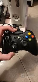 xbox 360 in buone condizioni con incluso un controller + pacco batteria nuovo e cavo, un alimentatore originale microsoft e una kinect mancante di cavo di collegamento per xbox 360 fat.