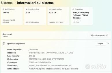 vendo per scarso utilizzo bellissimo notebook Xiaomi modello Tm1604 senza SSD, 8gb RAM, doppia scheda video Intel graphics e Nvidia g-force Mx150 2gb RAM . Il notebook funziona bene in tutto, bisogna solo cambiare la batteria perché non tiene la carica e si spegne improvvisamente.Provvisto di caricabatteria, la tastiera è stile America.