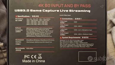 Vendo per inutilizzo grabber hdmi passante per montaggio video o live streaming su mac o pc. Specifiche sull ultima foto.