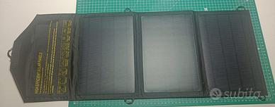 Vendo caricatore solare portatile Ying Guang 21W, pieghevole e impermeabile, perfetto per campeggio, trekking, viaggi e attività all’aperto.