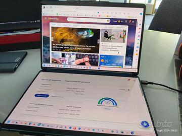 Processore i7 13a gen, windows 11 home, scheda intel iris xe, memoria 16gb, disco fisso 1 tera, doppio schermo oled touch, lettore impronte digitali, lenovo digital pen 3, tastiera bluetooth tidal teal. GARANZIA 1 mese residuo. Perfetto in tutto, non scambio con niente, vendo per inutilizzo. No affaristi perditempo grazie.
