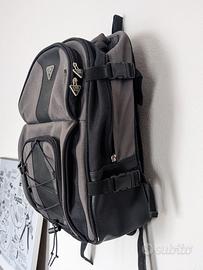 Ha inoltre vari ganci di chiusura, asole per eventuale lucchetto, spallacci regolabili ed imbottiti, e il classico laccio con tirante sul fronte per metterci il maglioncino o quant'altro.