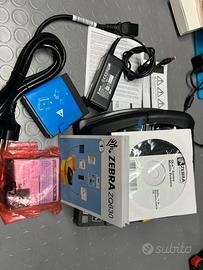 Stampante zebra portatile completa di doking station opzionale con cavo lan e 2 batterie.