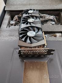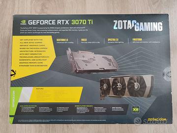 Architettura Ampere: La scheda è basata sull'architettura Ampere di NVIDIA, che offre notevoli miglioramenti delle prestazioni rispetto alle generazioni precedenti. Questa architettura è ottimizzata per il ray tracing e l'AI, offrendo prestazioni eccezionali nei giochi di ultima generazione. NVIDIA CUDA Cores: La scheda grafica dispone di 6.144 CUDA Cores, che gestiscono il rendering grafico e le operazioni di calcolo parallelo. VRAM da 8 GB: La Zotac 3070 Ti è dotata di 8 GB di memoria GDDR6X ad alta velocità. Questa VRAM consente di caricare rapidamente texture e risorse di gioco, rendendo la scheda grafica adatta anche per giochi e applicazioni ad alta risoluzione. Ray Tracing e DLSS: La scheda supporta il ray tracing in tempo reale, rendendo possibile una grafica più realistica e illuminazione avanzata nei giochi. Inoltre, supporta il DLSS (Deep Learning Super Sampling), una tecnologia che utilizza l'IA per migliorare le prestazioni nei giochi abilitati al ray tracing. Tecnologia di raffreddamento: La serie Trinity di Zotac è nota per il suo sistema di raffreddamento avanzato. La 3070 Ti Trinity presenta tre ventole, una soluzione di raffreddamento efficace che mantiene le temperature sotto controllo durante l'uso intensivo. Connettività: La scheda offre una serie di porte di connettività, tra cui tre porte DisplayPort 1.4a e una porta HDMI 2.1. Inoltre, è compatibile con la tecnologia NVIDIA Reflex per ridurre la latenza in giochi competitivi. Compatibilità con il software NVIDIA: La scheda è compatibile con il software di gestione NVIDIA, inclusi driver Game Ready che ottimizzano automaticamente le impostazioni di gioco per prestazioni ottimali. Design e illuminazione RGB: Il design della Trinity è elegante e accattivante. La scheda grafica presenta anche illuminazione RGB personalizzabile per abbinarla al tema del tuo PC. In sintesi, questa è una scheda grafica di fascia alta che offre prestazioni eccezionali per il gaming e le app professionionali.