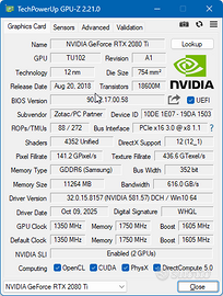 Zotac GeForce RTX 2080 Ti Extreme OC 11GB GDDR6 352-bit RGB. RTX 2080Ti ottime condizioni, perfetta nessun segno, senza scatola.