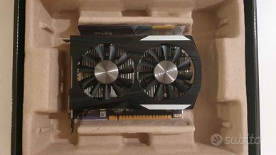 Vendo scheda video per pc fisso ZOTAC GTX 1050 TI usata solo 2 anni, con tanto di confezione originale. Descrizione Zotac GeForce GTX 1050 Ti OC Edition. Graphics processor family NVIDIA, Graphics processor GeForce GTX 1050 Ti, Processor frequency 1392 MHz. Discrete graphics adapter memory 4 GB, Graphics adapter memory type GDDR5, Memory bus 128 bit, Memory clock speed 7000 MHz. Maximum resolution 7680 x 4320 pixels. DirectX version 12.0, OpenGL version 4.5, Dual Link DVI. Interface type PCI Express 3.0. Cooling type Active Processor Graphics processor family NVIDIA Graphics processor GeForce GTX 1050 Ti Maximum resolution 7680 x 4320 pixels CUDA Ja Processor frequency 1392 MHz Processor boost clock speed 1506 MHz Maximum displays per videocard 3 CUDA cores 768 Memory Discrete graphics adapter memory 4 GB Graphics adapter memory type GDDR5 Memory bus 128 bit Memory clock speed 7000 MHz Ports & interfaces Interface type PCI Express 3.0 HDMI ports quantity 1 DVI-D ports quantity 1 DisplayPorts quantity 1 HDMI version 2.0b DisplayPort version 1.4 Performance TV tuner integrated - PhysX - DirectX version 12.0 OpenGL version 4.5 Dual Link DVI Ja HDCP Ja Full HD Ja Design Cooling type Active Number of slots 2 Colour of product Black Power Minimum system power supply 300 W Power consumption (typical) 75 W System requirements Windows operating systems supported Windows 10 Education,Windows 10 Education x64,Windows 10 Enterprise,Windows 10 Enterprise x64,Windows 10 Home,Windows 10 Home x64,Windows 10 Pro,Windows 10 Pro x64,Windows 7 Enterprise,Windows 7 Enterprise x64,Windows 7 Home Basic,Windows 7 Home Basic x64,Windows 7 Home Premium,Windows 7 Home Premium x64,Windows 7 Professional,Windows 7 Professional x64,Windows 7 Starter,Windows 7 Starter x64,Windows 7 Ultimate,Windows 7 Ultimate x64,Windows 8,Windows 8 Enterprise,Windows 8 Enterprise x64,Windows 8 Pro,Windows 8 Pro x64,Windows 8 x64 Weight & dimensions Height 111.2 mm Width 174 mm Packaging data Manual Ja