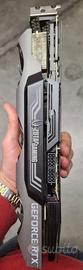 Questa unità hardware è un componente di elaborazione grafica usato. Il dispositivo presenta una configurazione di raffreddamento a tre ventole e richiede due connettori di alimentazione a 8 pin per il funzionamento. La manutenzione dei componenti interni è stata eseguita 12 mesi fa, specificamente con la sostituzione del materiale di interfaccia termica e dei pad termoconduttivi. I dati prestazionali indicano un punteggio grafico 3DMark Time Spy di 19.429.