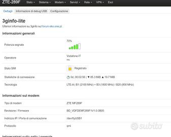 Vendo ZTE MF289F, router 4G LTE Cat 20 super versatile, perfetto per una connessione sempre stabile a casa o in ufficio.